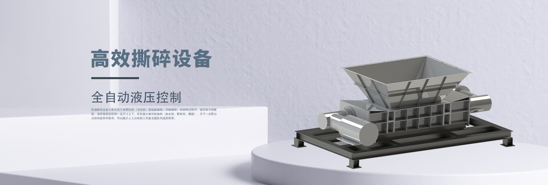 核心设备固废撕碎设备主要运用于装修、装潢垃圾的初、中级破碎,在挤碎过程中,将垃圾中的硬质、易碎物质挤碎到一定程度,同时极少破坏软物质。可以减少人工分选的工作量和提高风选效率。